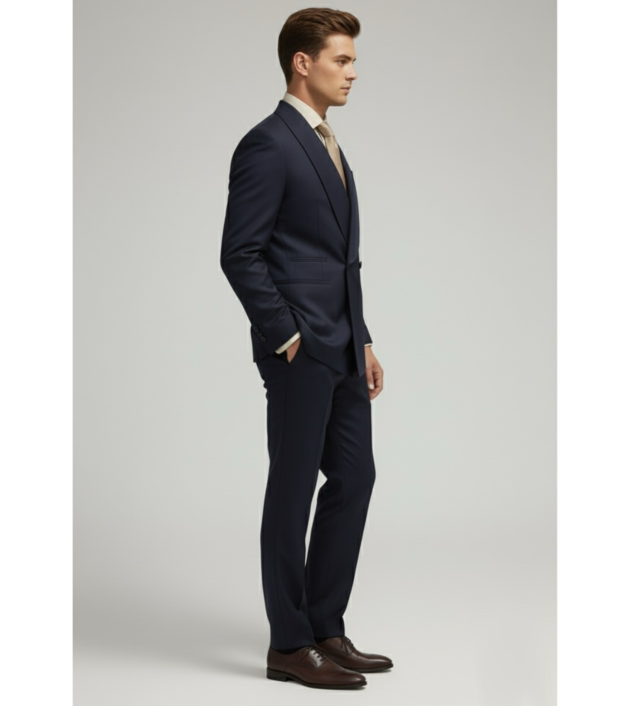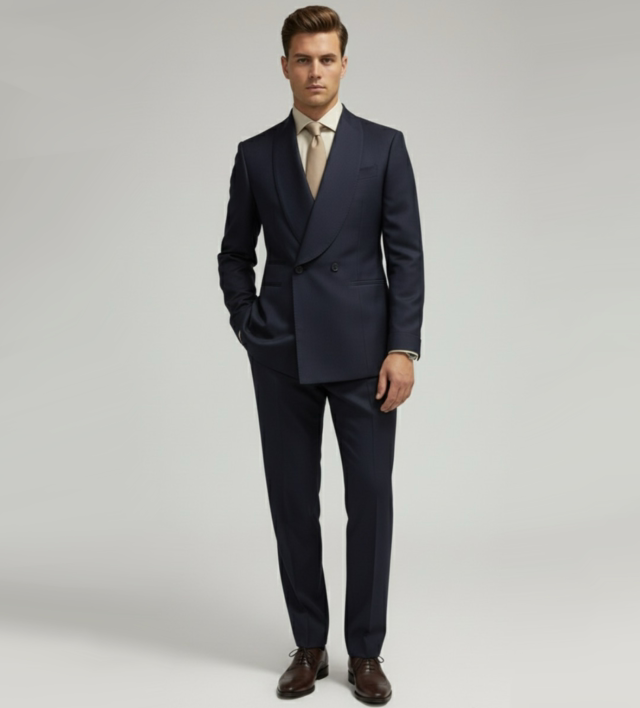 Abito con rever sciallato, in tessuto twill di lana vergine 315 g/m blu.