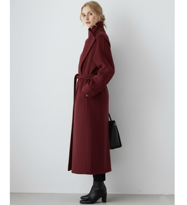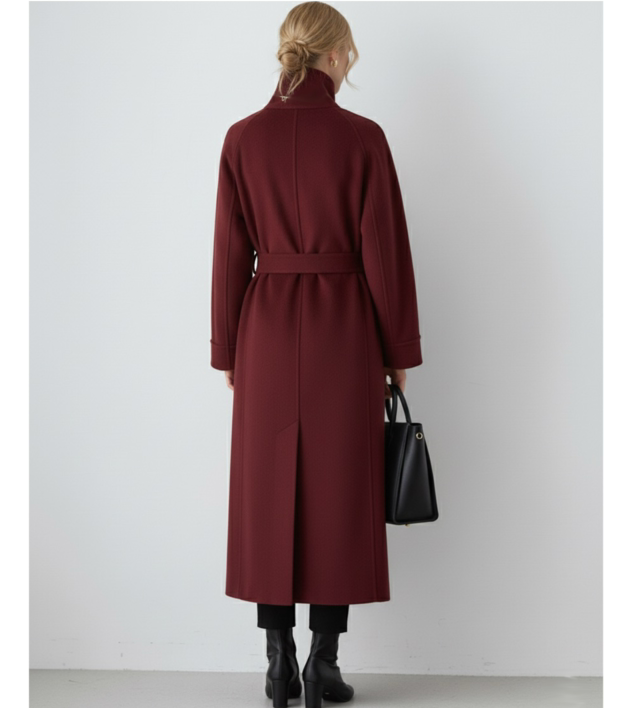 Cappotto lungo bordeaux in tessuto di Lana con fodera in viscosa .